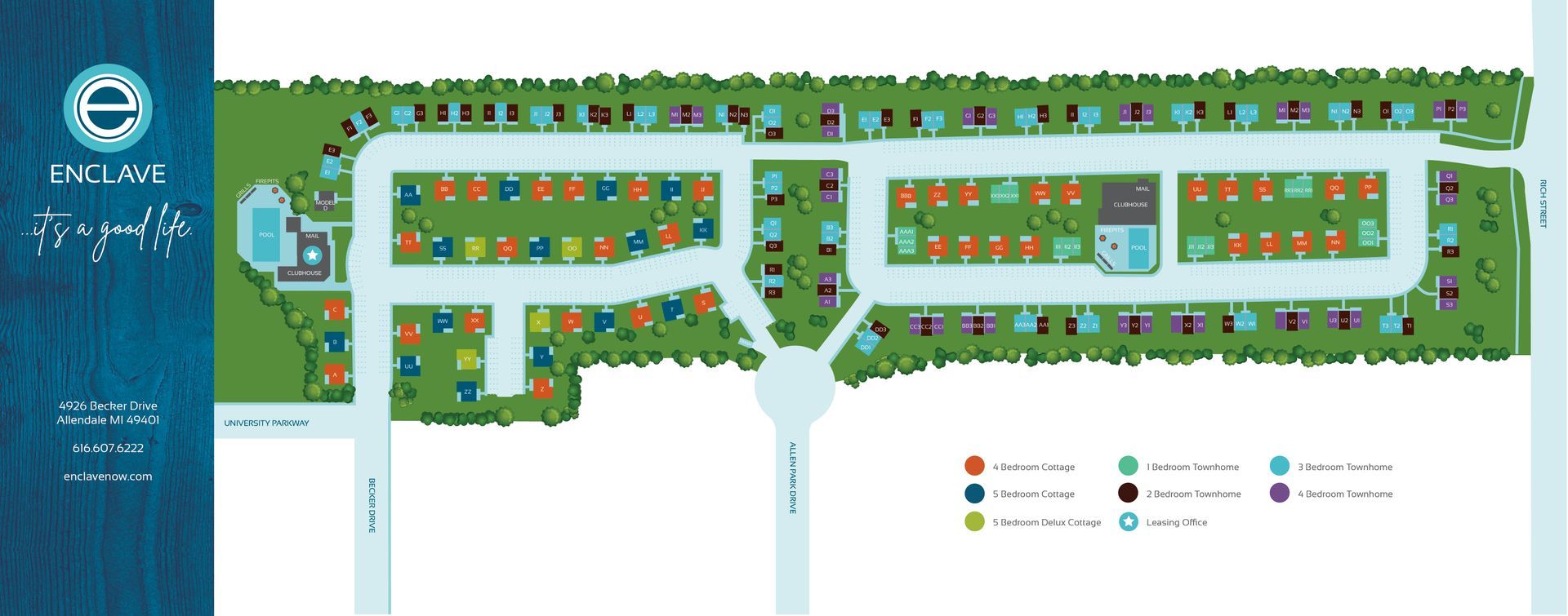 Welcome to Enclave – a residential community featuring unique townhomes and cottages in Allendale.